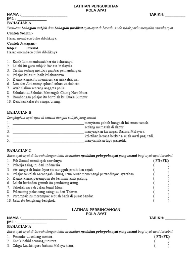 Latihan Pengukuhan Subjek Dan Predikat / Bahasa Melayu Tingkatan 2 Subjek Dan Predikat