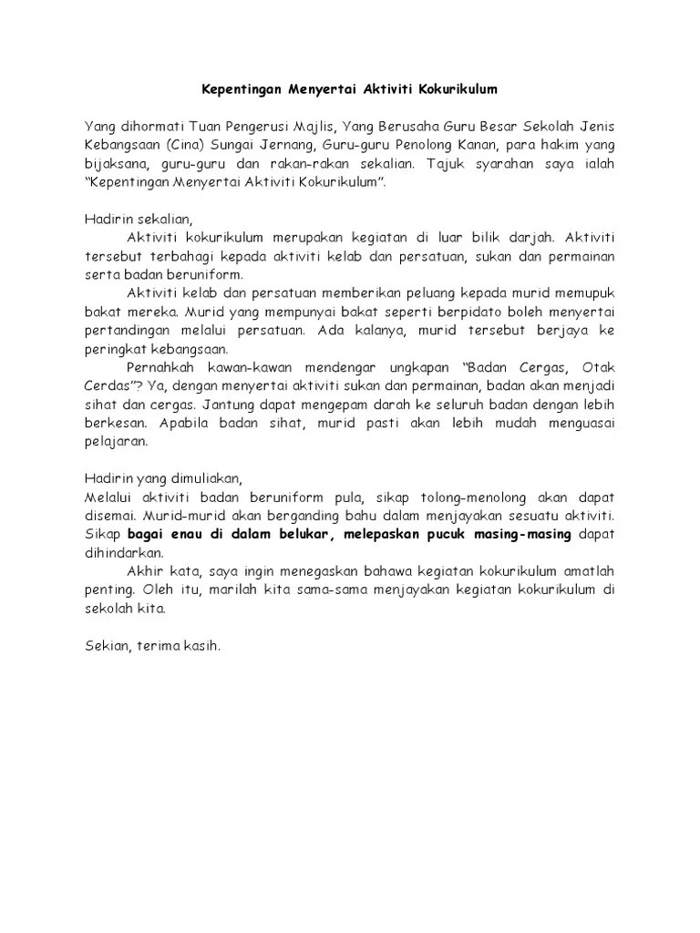 Karangan Syarahan Faedah Menyertai Aktiviti Kokurikulum / Contoh Karangan Upsr Bahasa Melayu Senarai Tahun 6
